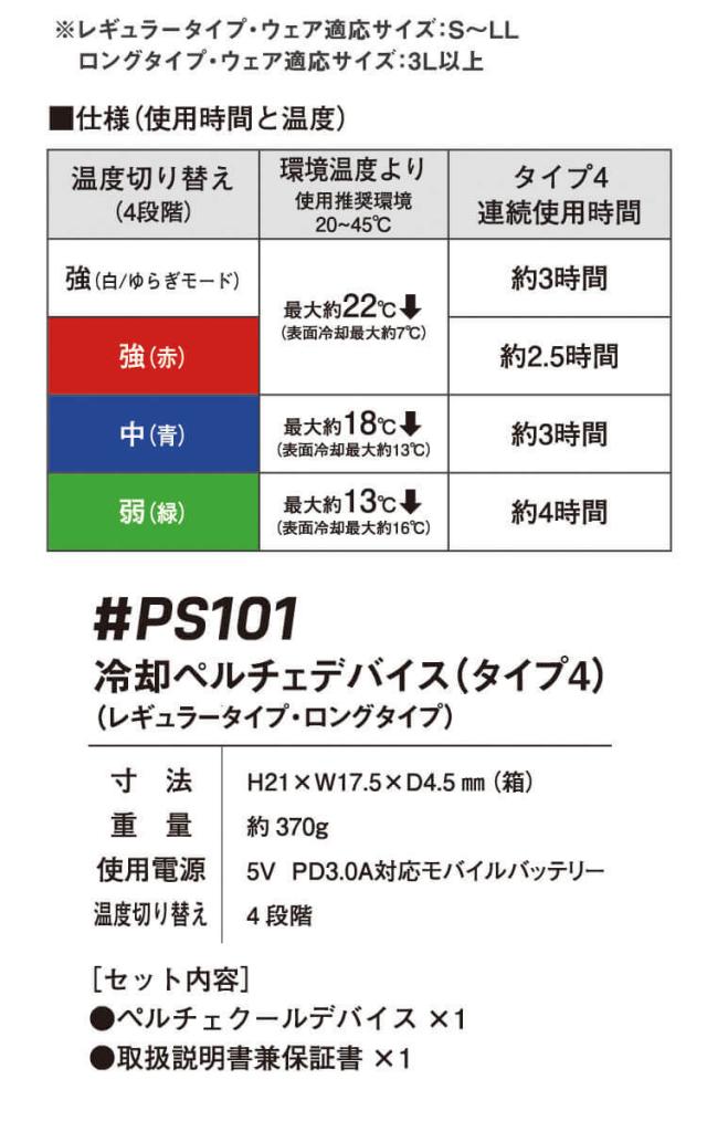 ・セット内容 :長袖ジャケット×1 4個付きペルチェデバイス×1 モバイルバッテリー、取扱説明書×1
