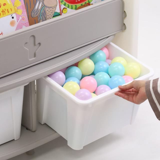 ぬいぐるみやボール、ミニカーやブロックなどを収納できます。