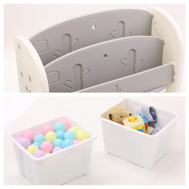 下段には、かさばるオモチャを整理しやすいよう、ボックスが2つ付いています。