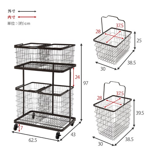 | サイズ(cm) | (約)幅62.5×奥行43×高さ97cm |