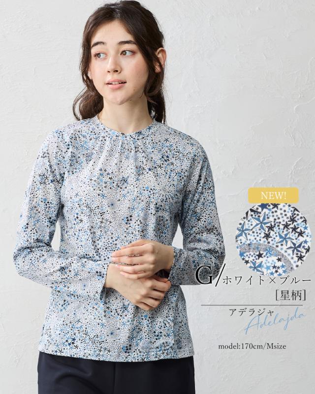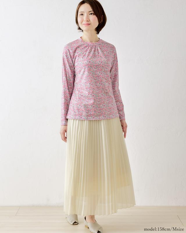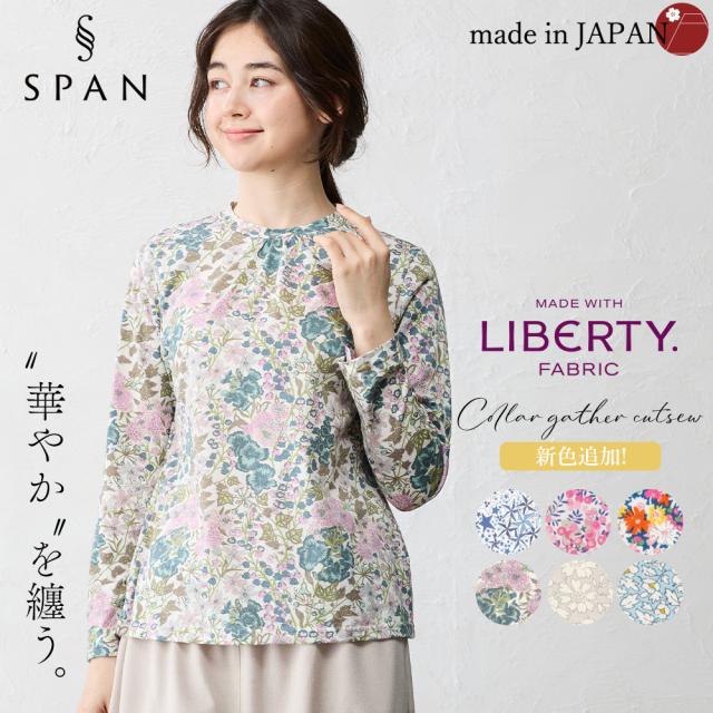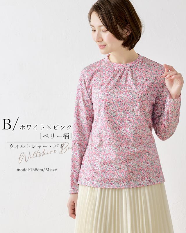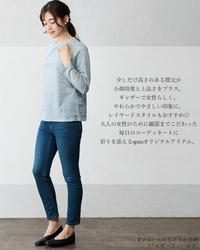 トップス シャツ Tシャツ カットソー ギャザーネック ネックギャザー 長袖 重ね着 レイヤード レイヤードインナー インナー 綿 綿100% コットン コットン100% シェラトンジャージ ストレッチ 伸縮性 リバティ生地 リバティプリント LIBERTY リバティ リバティー 花柄 草花 植物 フラワー ボタニカル 総柄 シンプル きれいめ フェミニン ウィルトシャーバド リビー カペル フェザーフィールズ 春 夏 秋 冬 婦人服 女性 服 ミセス ミセスファッション 40代 50代 レディースファッション ファッション 人気 通販 日本製 SPAN スパン 母の日 誕生日 敬老の日 クリスマス バースデー ギフト プレゼント ラッピング 贈り物
