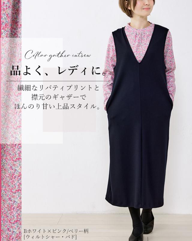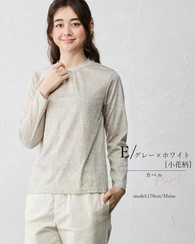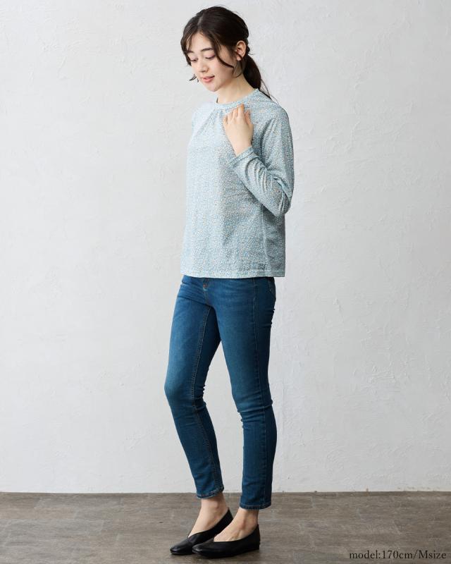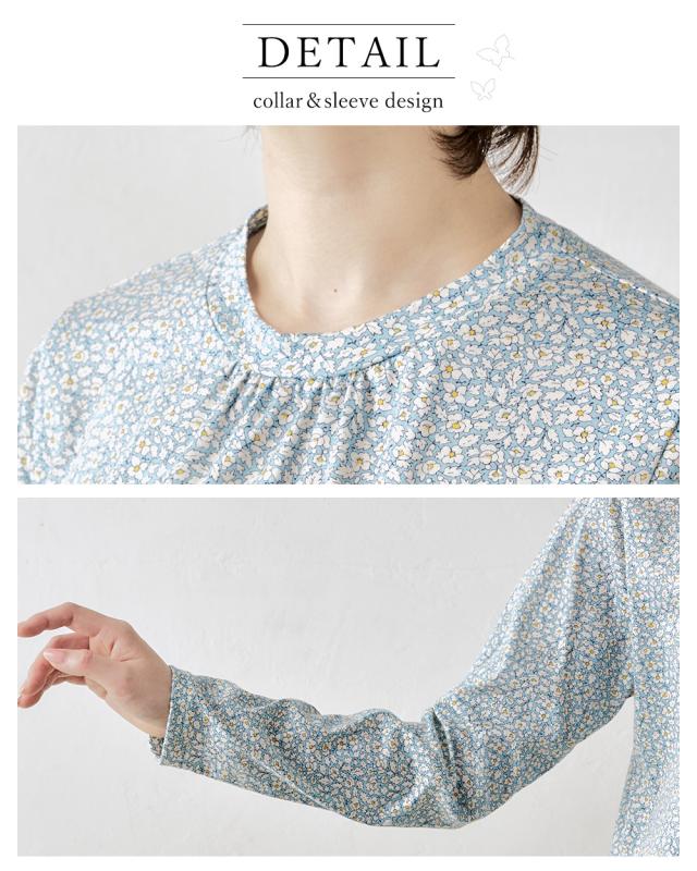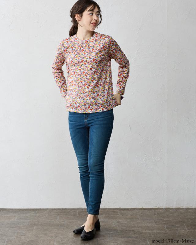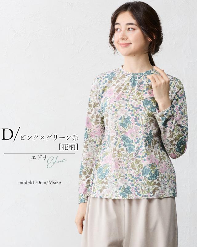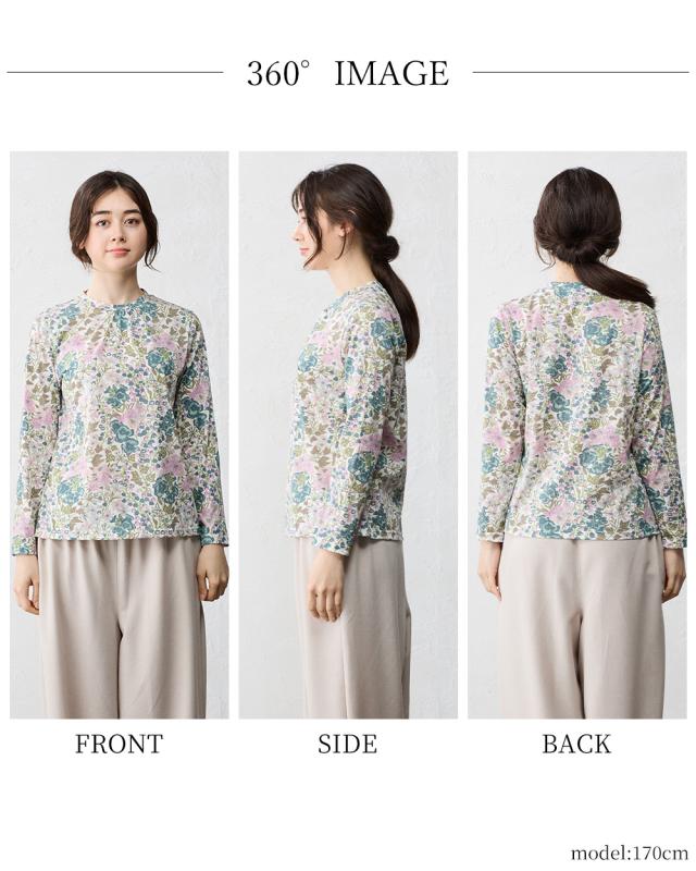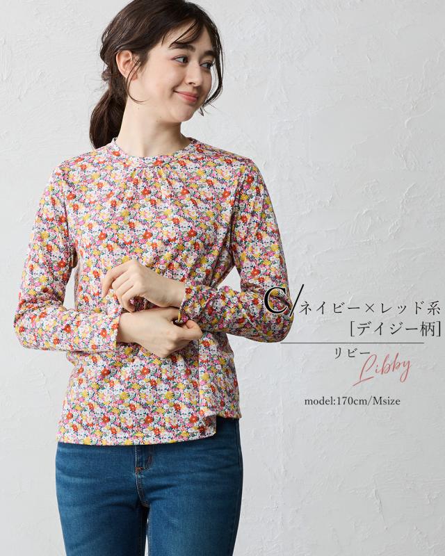 リバティ LIBERTY カットソー 日本製 花柄 フラワー 草花 ボタニカル プリント 綿100% コットン 綿 Tシャツ プルオーバー 長袖 襟ギャザー ファッション レディース お出かけ 春 冬 秋 トップス インナー ストレッチ レイヤード 重ね着 カジュアル リバティ生地 4190929