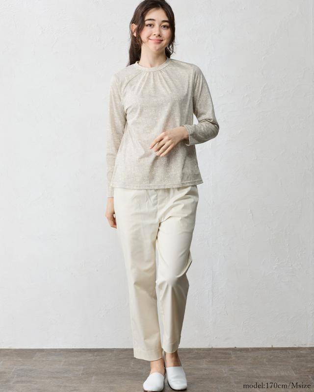 ほんのり高さのあるギャザーネックで品よくまとまる長袖カットソー