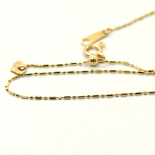 60センチ 10金ゴールド スモールア&ロング カットボールチェーン ネックレス 幅0.8mm 全長60cm 容易に長さ調節ができます スライドチェーン ハートチャーム 送料無料