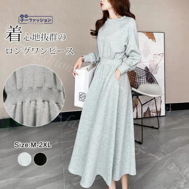 ワンピース ロングワンピース 長袖 レディース プリーツワンピース 春新作 新作 ロング丈 マキシワンピース きれいめ トレーナー リブ 着痩せ マタニティ ゆったり ワンマイルウェア Aライン Iライン 可愛い 秋冬 バレンタイン