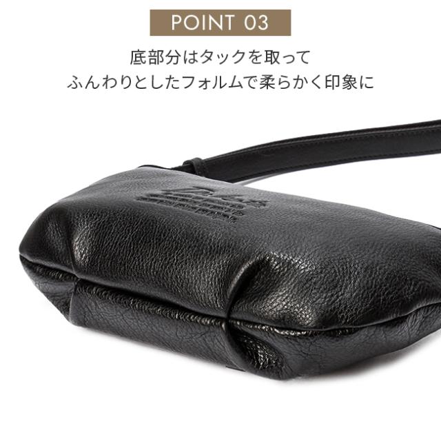 | シンプルなデザインと柔らかなレザーが いつものお出かけにさり気なく寄り添う 手にしっくり馴染む柔らかな牛革を、日常使いにぴったりのバッグに仕立てました。シンプルながらもサイズ感やフォルムにこだわり、実用性も抜群。毎日のお出かけにしっくりフィットしてくれるバッグシリーズです。 丸いフォルムが可愛らしいショルダーバッグ。長財布や500mlペットボトルが横向きでぴったり入るくらいの、コンパクトなサイズ。必要最低限のアイテムだけ入れて行動したい時にぴったりです。 軽くて艶があるソフトな牛革を使用し、どんなコーディネートとも相性抜群で1つ持っていると重宝します。 |