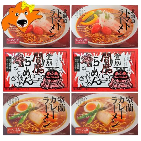 北海道 トマトラーメン / 登別 閻魔ラーメン / 室蘭 カレーラーメン 乾麺 ラーメン詰め合わせ トマト ラーメン / 担々麺 / カレー ラーメン 各2個 計6個 麺類 ラーメン セット