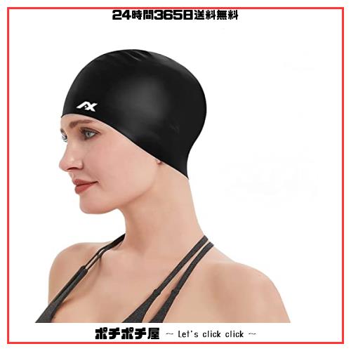AX スイミングキャップ 水泳キャップ スイムキャップ シリコン 大きめ 水泳帽子 長髪 ゆったりサイズ レディース メンズ (ブラック)