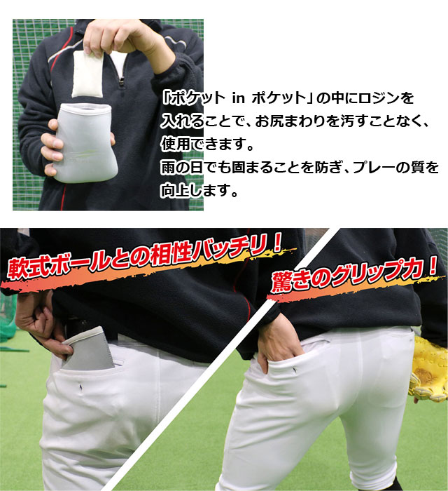 軟式ボールと相性抜群なロジンと、ポケットinポケットのセットです。