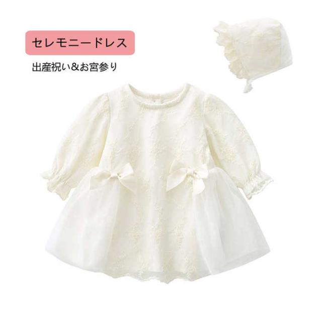 商品名:セレモニードレス ベビードレス 女の子 ドレス ベビー フォーマルワンピース ベビー服 出産祝い 長袖ドレス 上品な刺繍 セットアップ 帽子付き 新生児 お宮参り 退院 結婚式 ベビー用品 春 夏 秋 子ども服 撮影衣装 ギフト66cm 73cm 80cm 90cm 100cm 110cm