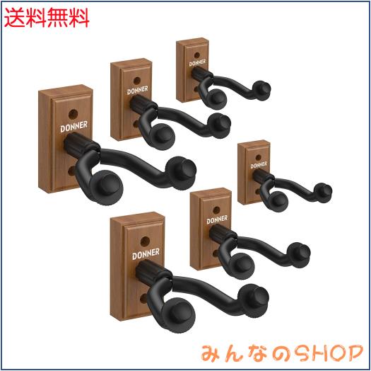 【親切なデザイン】頑丈なステンレススチール、柔らかいゴム製スリーブ、取り外し可能なゴム製リングにより、ギターをよりよく保護できますDonner ギターハンガー 壁掛け ブラックウォールナット材 荷重10KG ベース/ウクレレ ネジ付 (6個)