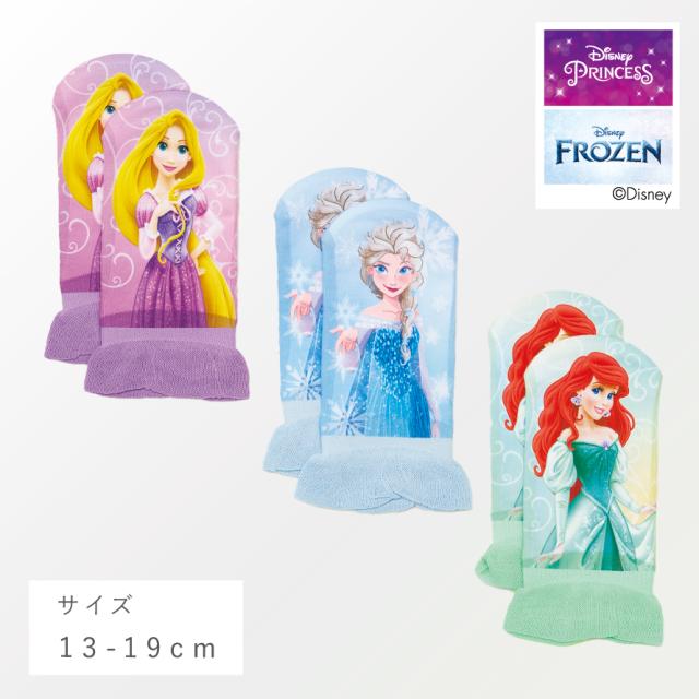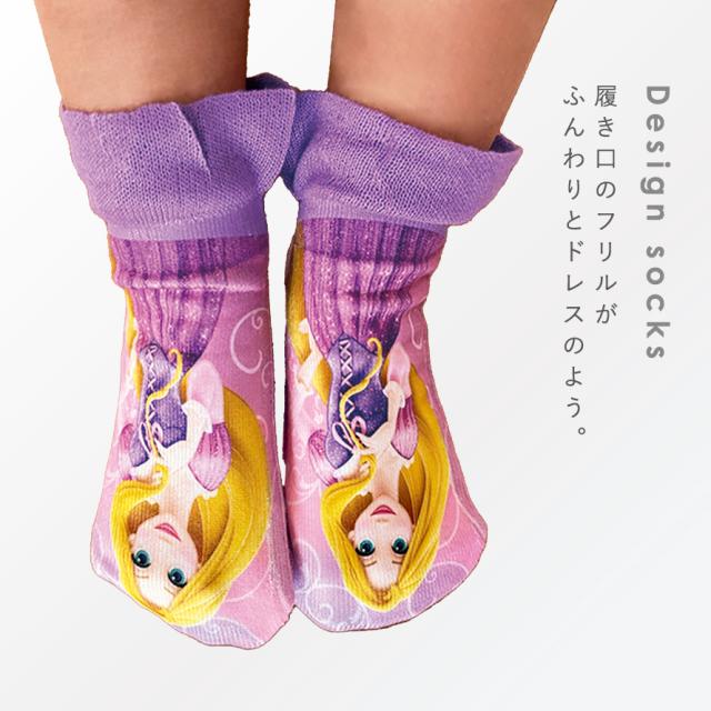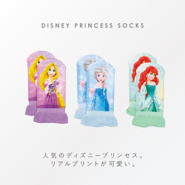 大人気のディズニープリンセス。リアルプリントとフリルがキュートな靴下セット。憧れのラプンツェル・アリエル・エルサのリアルイラスト。