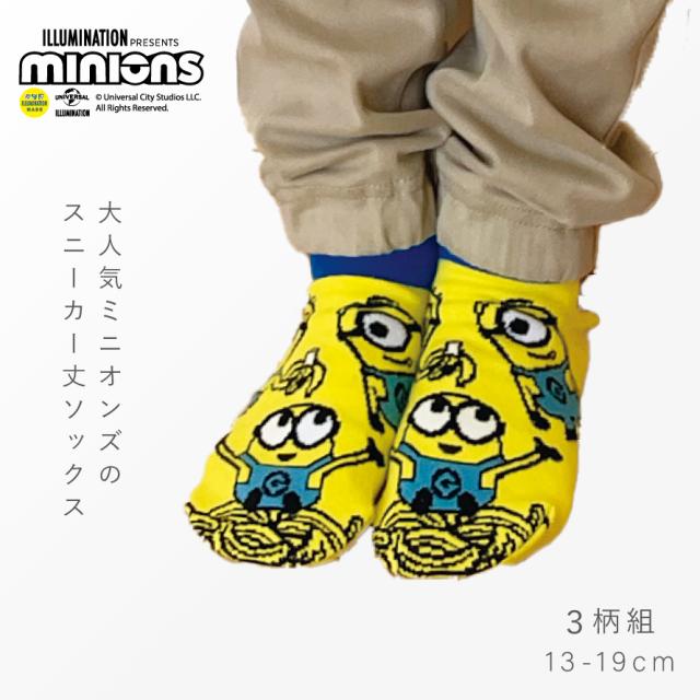 ミニオンズ 靴下 3柄組 13-19cm ミニオン グッズ 靴下 キッズ キャラクター 名前が書ける スニーカー丈 くるぶし スニーカーソックス ロークルーソックス ミニオンズスニーカー丈ソックス