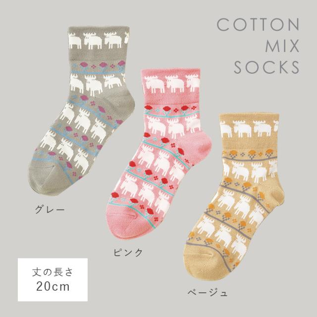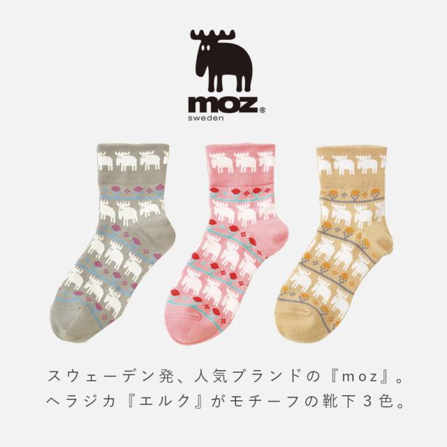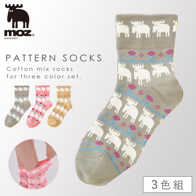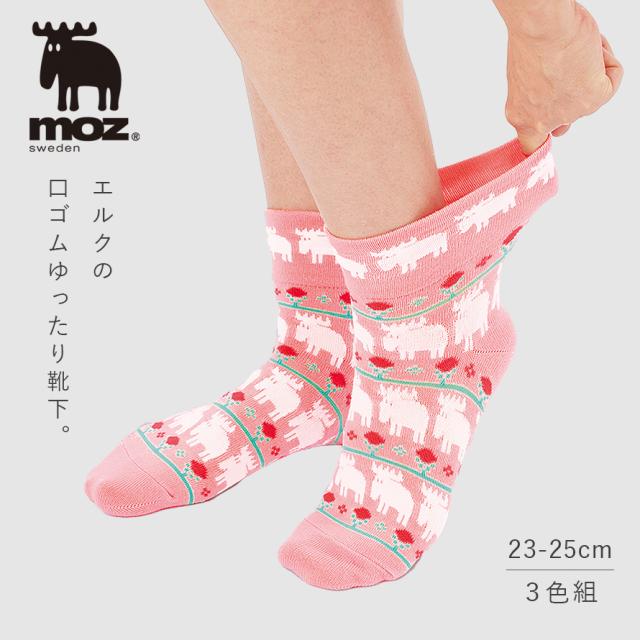 moz 靴下 履き口 ゆったり レディース 【3色組】23-25cm 北欧 柄 モズ おしゃれ かわいい カジュアル 【 口ゴムなし みたいな履き心地】 足首 ゆるい ゆるめ 口ゴムゆったり 締め付けない むくみ まとめ買い moz口ゴムゆったりエルクソックス 跡がつかない