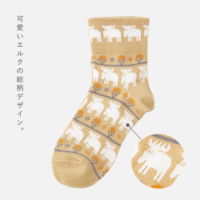 おしゃれな北欧雑貨ブランドで日本でも大人気の「エルク」がプリントされた靴下です。