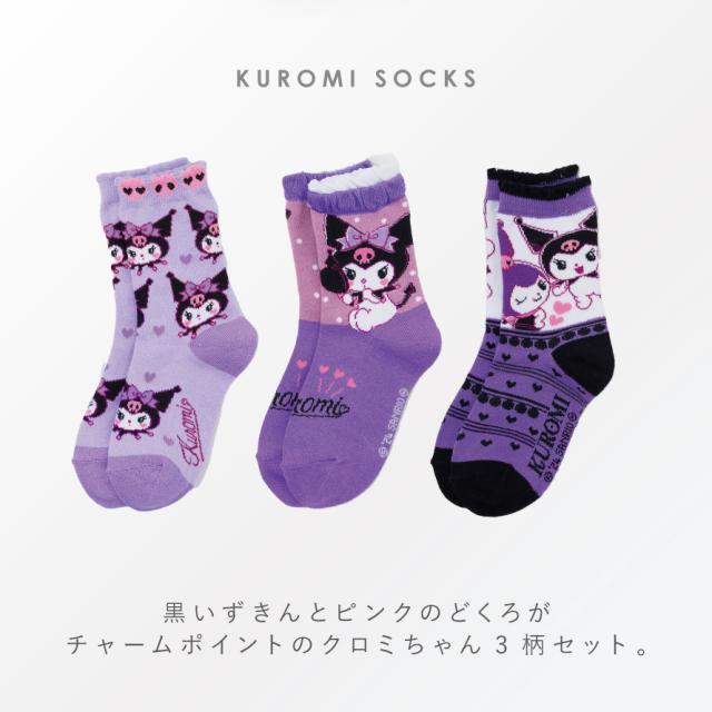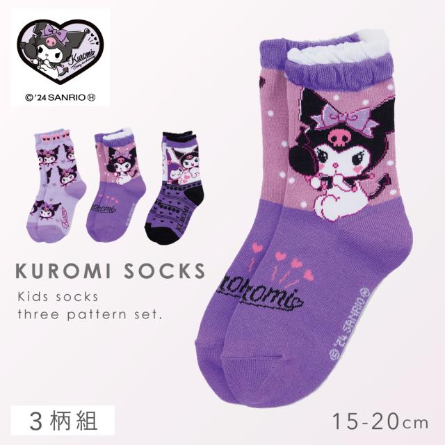 クロミちゃん 靴下 3柄組 15-20cm 女の子 15cm キッズ 女の子 可愛い クロミ サンリオ キャラクター 名前が書ける サンリオクロミソックス