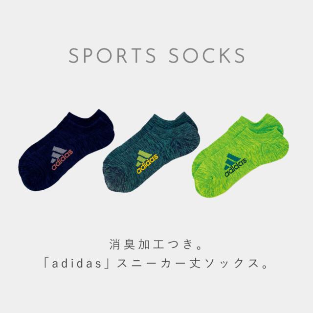 消臭機能がついたスニーカー丈のアディダスソックス。嬉しい消臭機能付き。汗をかいたりムレやすいスポーツや学校にもおすすめ。