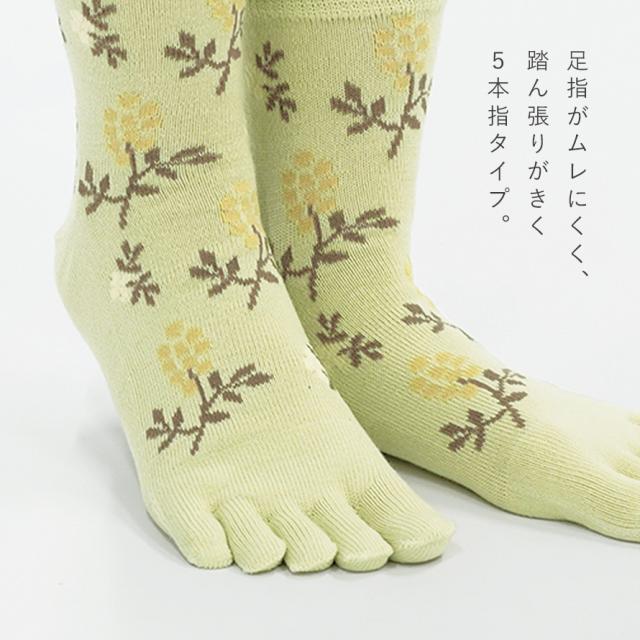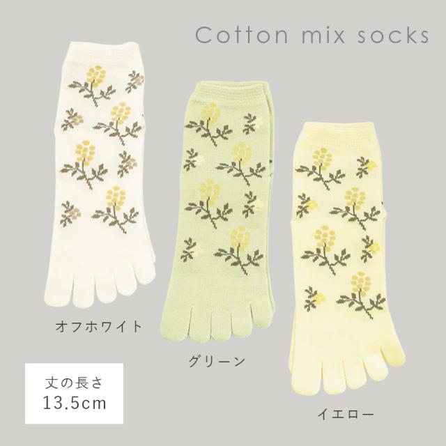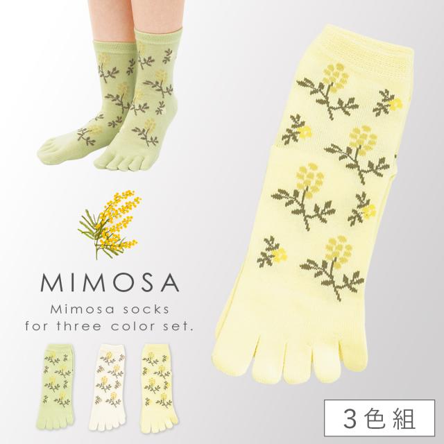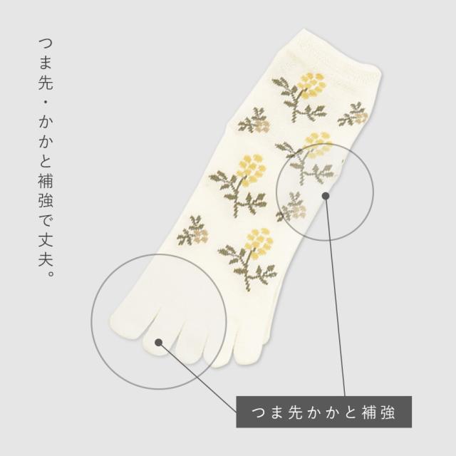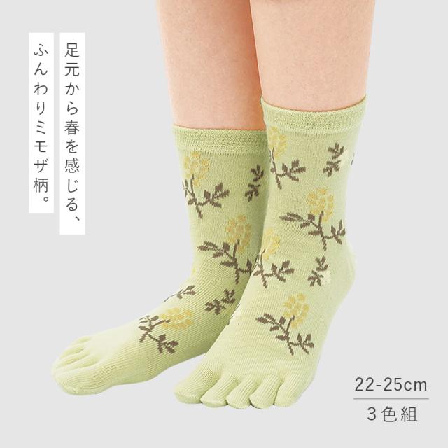 五本指ソックス レディース 【3色組】 22-25cm 五本指靴下 5本指ソックス 花柄 靴下 春 ミモザ 【 春にぴったり・ミモザの花柄ソックス 】 まとめ買い 3足 かわいい おしゃれ 5本指 五本指 ソックス つま先 かかと 補強 丈夫 ミモザ5本指ソックス