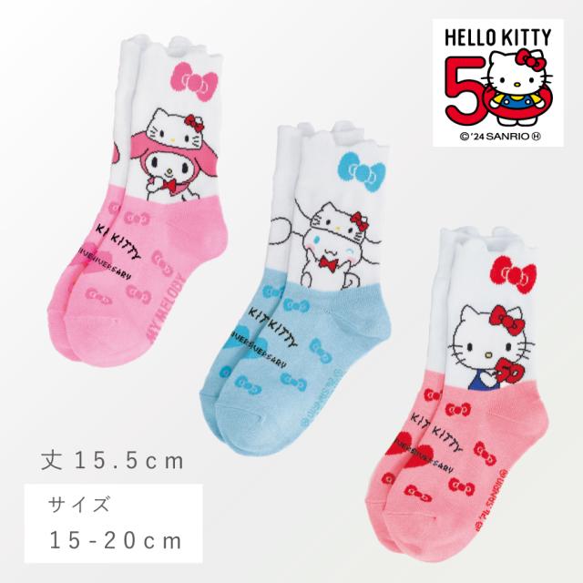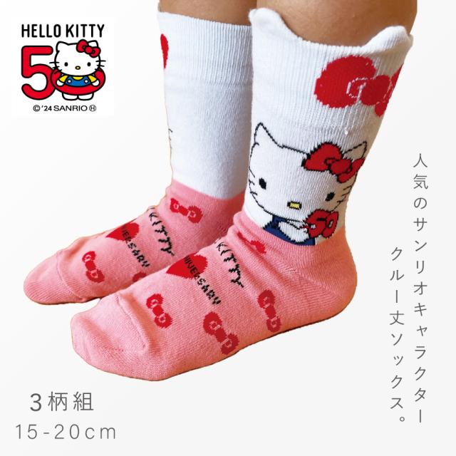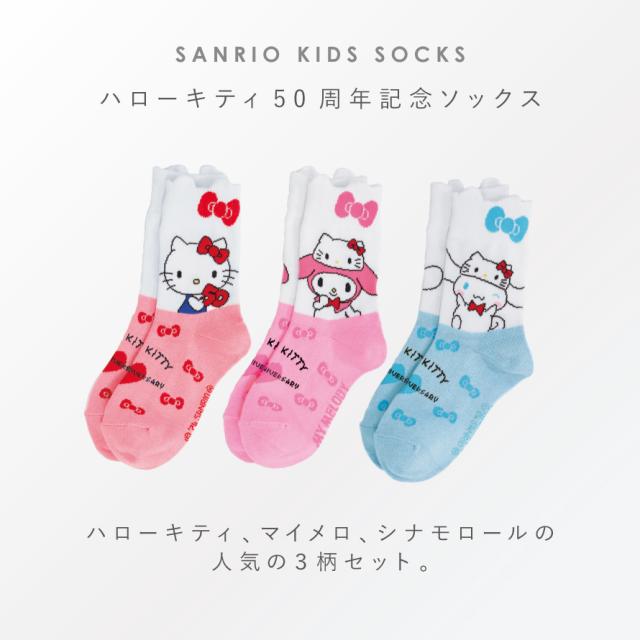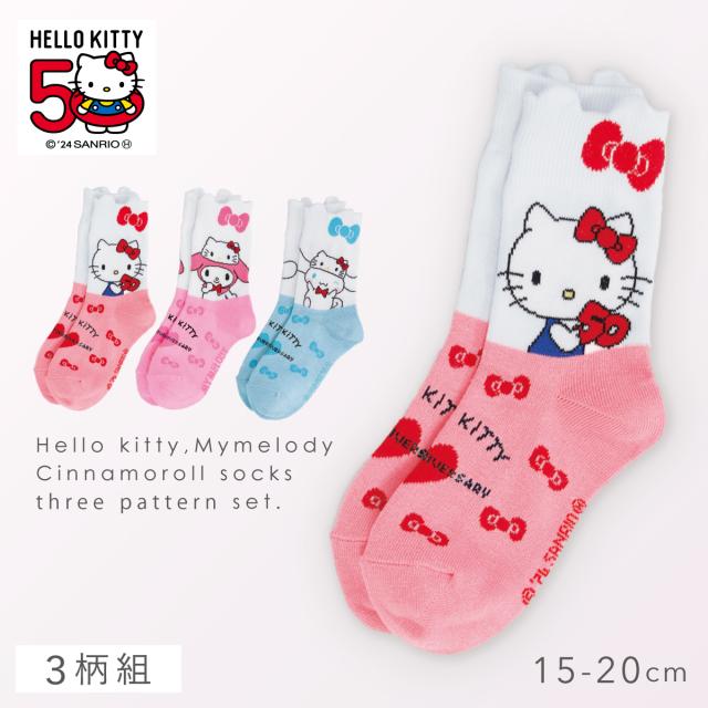 キティちゃん 靴下 3柄組 15-20cm 女の子 15cm キッズ 女の子 可愛い キティ ハローキティ マイメロディー マイメロ サンリオ キャラクター 名前が書ける ハローキティ 50THアニバーサリーソックス