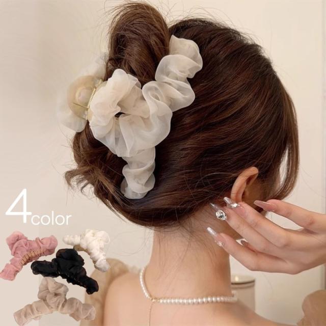 ヘアクリップ バンスクリップ レディース ヘアアクセサリー チュール 透け感 春 夏 女性 婦人 髪留め まとめ髪 ハーフアップ