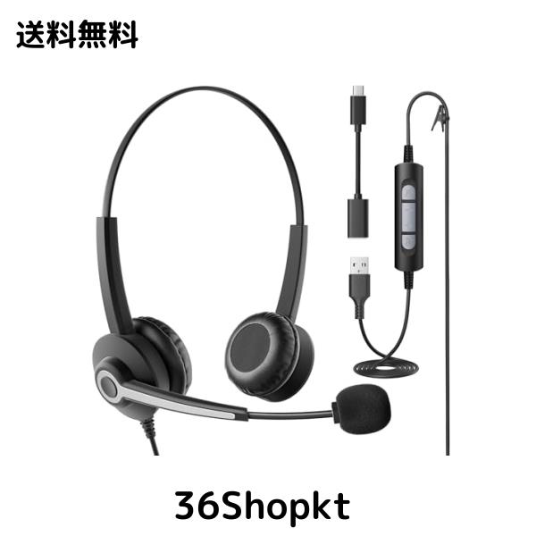 Wantek ヘッドセット USB Type-C 両耳 ノイズキャンセリングマイク付き コールセンター ヘッドセット Skype、Web会議、コールセンター、