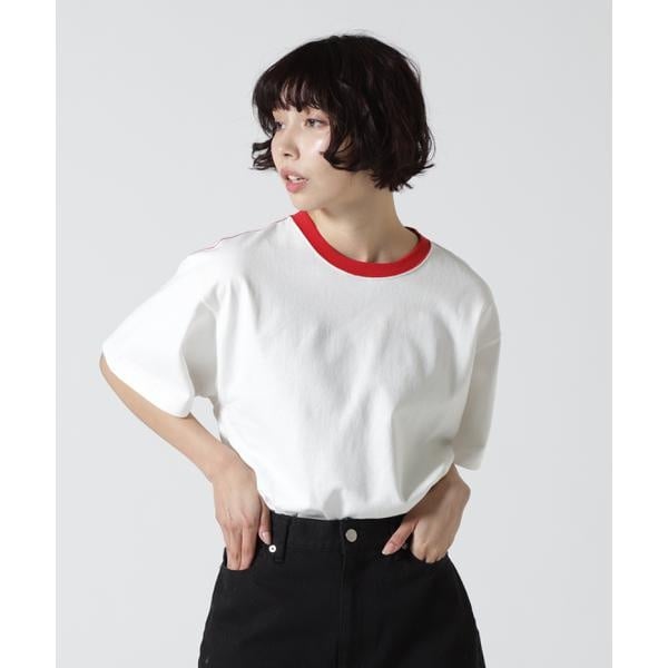 身幅がゆったりしたリンガーTシャツ。