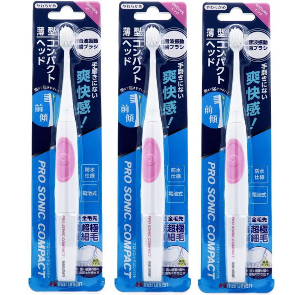 3本セット マルマン 音波振動歯ブラシ プロソニックコンパクイト ピンク 薄型ヘッド 28,000ブラシストローク/分 DH310PK ネコポス便対応品