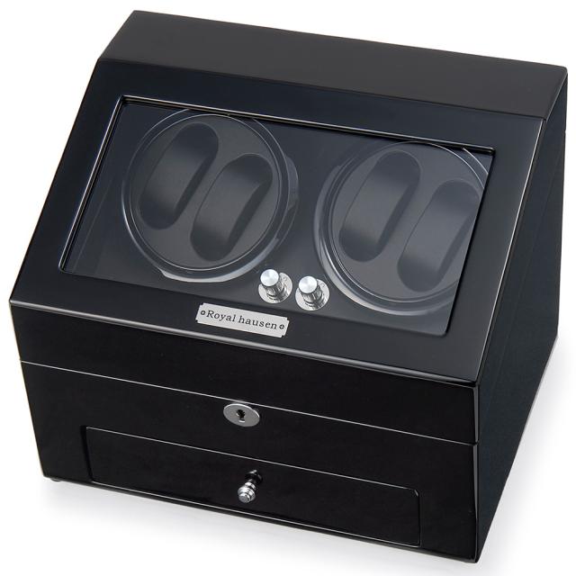 ロイヤルハウゼン 【国内正規品】時計収納ケース付き高級ワインダー 木製 4本巻6本収納(ブラック) GC03-D66BB[GC03D66BB] 返品種別B