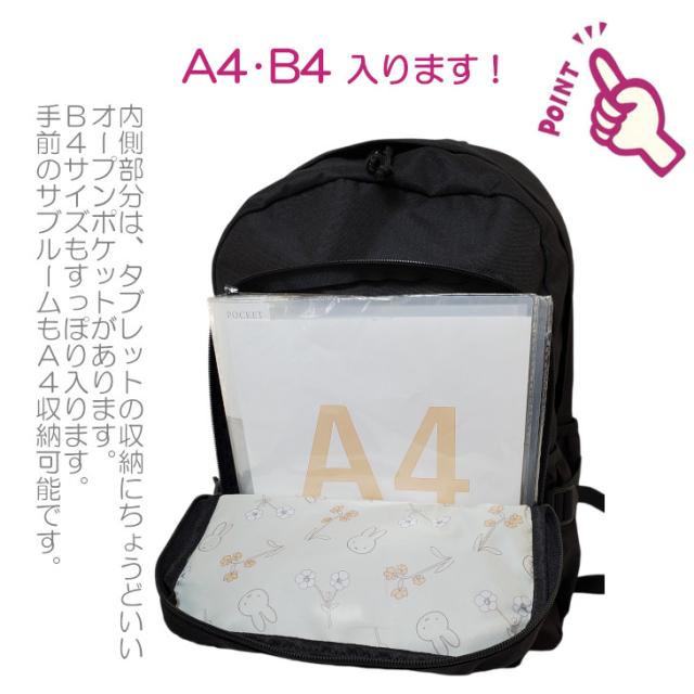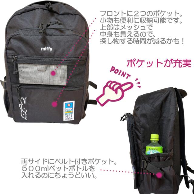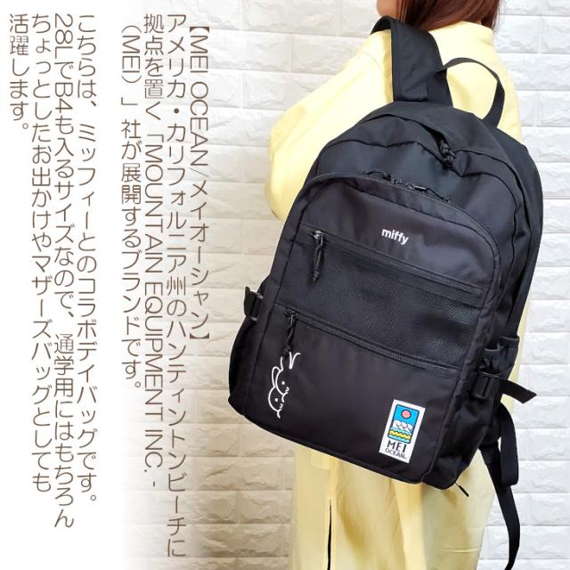 【ポイント】miffy メイオーシャン ミッフィー コラボ リュック MEIOCEAN 28L 通学リュック デイバッグ バックパック スクールリュック スクールバック マザーズバッグ リュックサック 通学 A4 B4 女子 高校生 女子高生 ブラック 人気