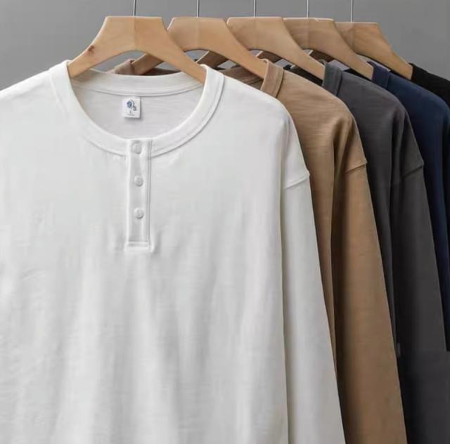 ヘンリーネック クルーネック メンズ ロングTシャツ 無地 Tシャツ 長袖 カットソー 100%綿 シンプル 細身 タイト ブラック ホワイト 黒 白 秋 冬 M L XL