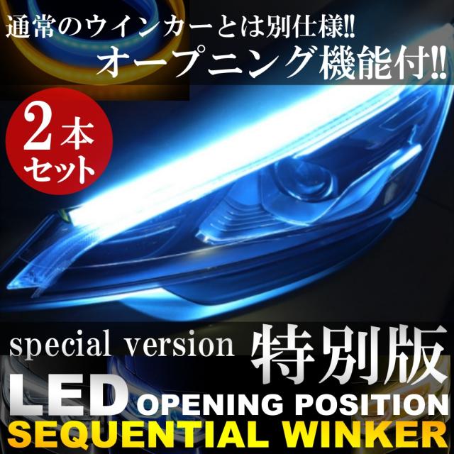 オープニング機能付 シーケンシャルウインカー LEDテープライト 流れるウインカー 60cm 2本 ホワイト ブルー アンバー シリコン カット可能 デイライト