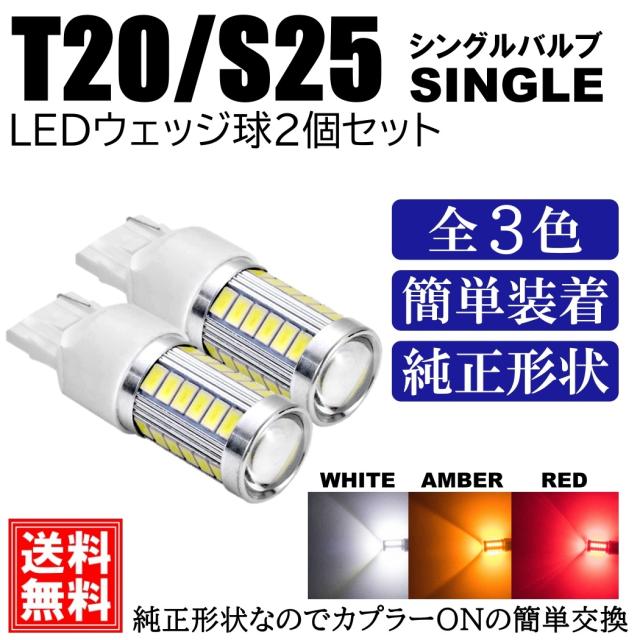 全3色 T20 シングル 高輝度 LED 33連 ウインカー ブレーキランプ バックランプ 後退灯 LEDバルブ ホワイト アンバー レッド