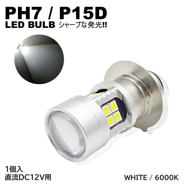 バイク 爆光 LED バルブ PH7 ヘッドライト T19L P15D-25-1 直流 DC12V専用 1個入 ホワイト 白 HiLo切替 22連SMD 原付 スクーター