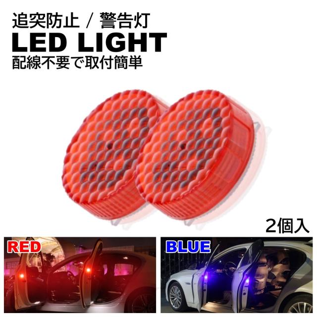 配線不要 LED警告灯 ドアストライカー 点滅灯 追突防止 ドア開閉作動 自動センサー 電池式 マグネット式 2個入