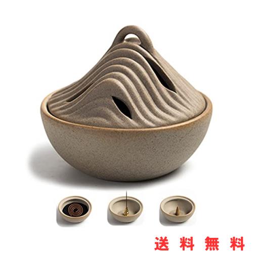 ?【機能性抜群】 ◎本体は上質陶製で、上品で高級感と耐高温性が相まっています。◎蓋付きなので深さもあり灰の舞い上がりもなく、風にも吹かれにくいので、エアコンや扇風機、窓のそばなど少し風を感じるような場所や屋外での使用も勧めます。◎底部にある机との断熱設計があります。◎蓋は取っ手付きで火傷せずに持ち運べます。◎防火綿のシート付で底に灰を敷かず手軽にお使い頂けます。鉢の中に香炉灰を敷き、その上に蚊取り線香を置いて使います。燃え尽きた後も、そのまま新しい線香をのせて使えるのでお手入れ楽々。◎口も広く作られており、丸洗い出来てお手入れも簡単です。
