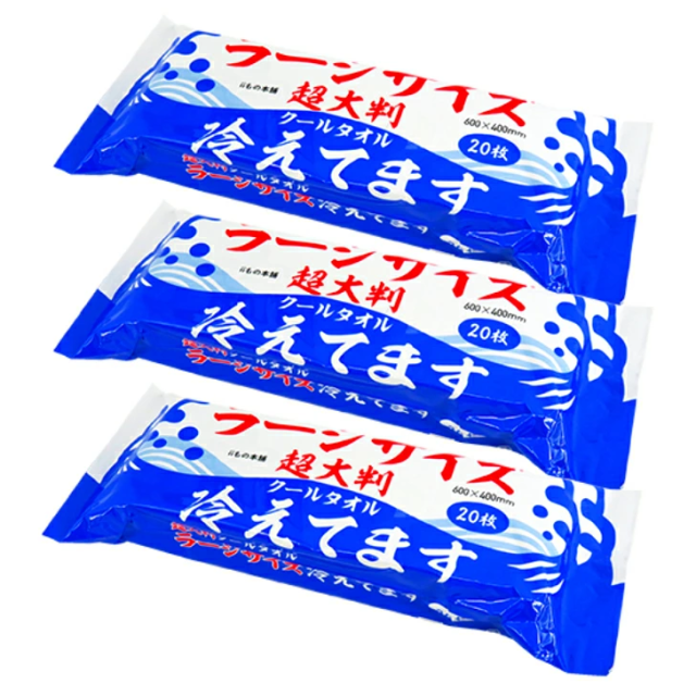 超大判 クールタオル 冷えてます 20枚入×3個セット ラージサイズ 600×400mm ボディ用 クールタイプ メントール配合 クールボディシート スポーツ アウトドア 猛暑対策 災害用備品 防災用品 株式会社iiもの本舗
