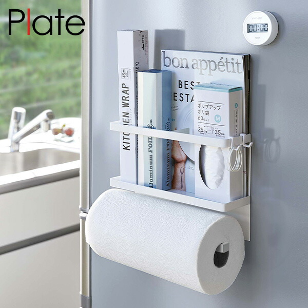 山崎実業 YAMAZAKI Plate マグネットキッチンペーパー&ラップホルダー プレート ホワイト 4291