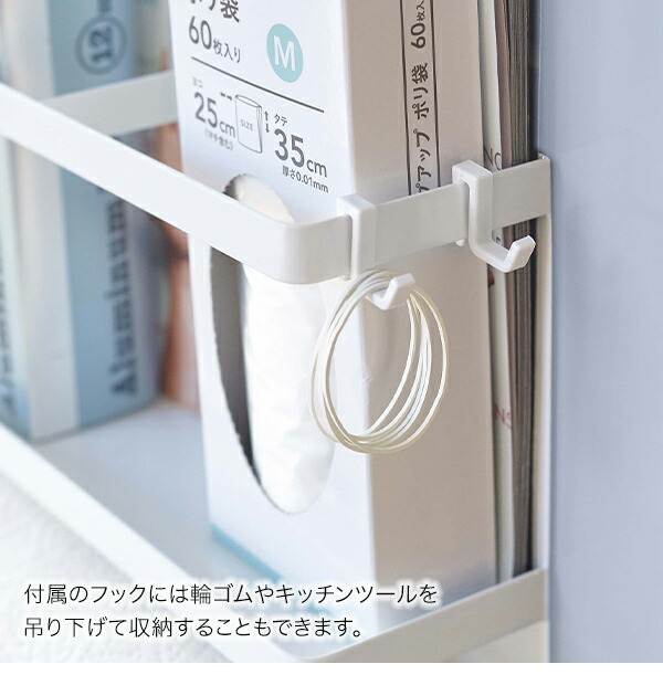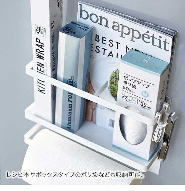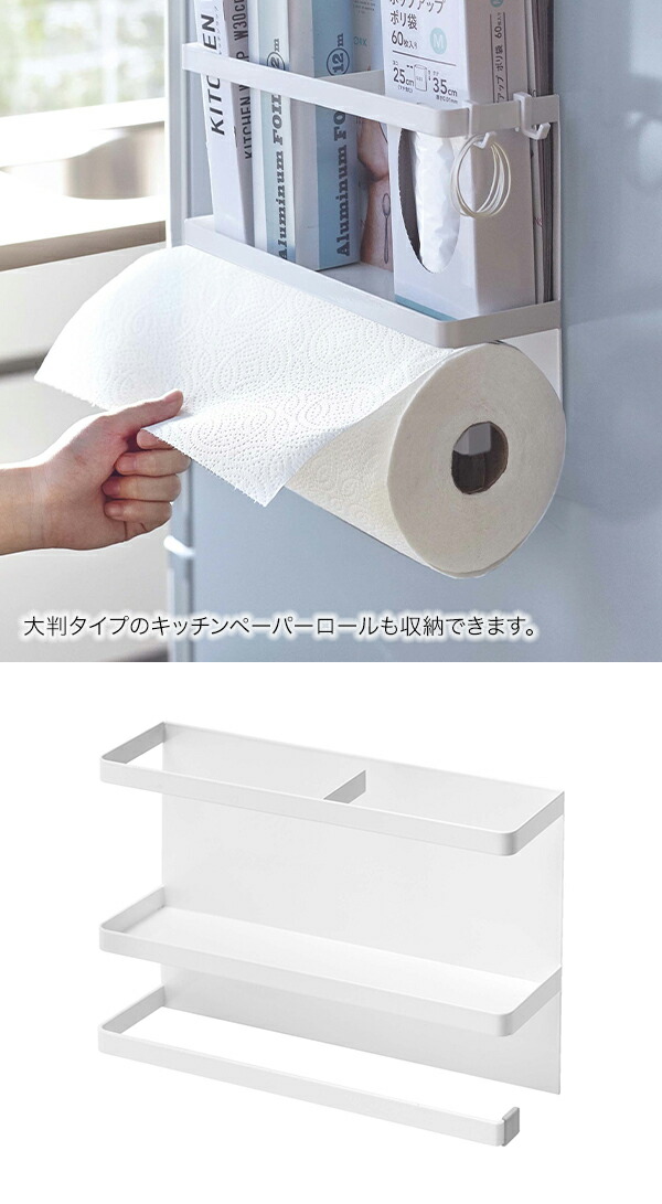 よく使うラップとキッチンペーパーを一括収納!大判タイプの海外製キッチンペーパーロールも収納できます。高さ約20cmなので冷蔵庫側面のスペースが少ない方や、小さい冷蔵庫の方にもオススメです。 |