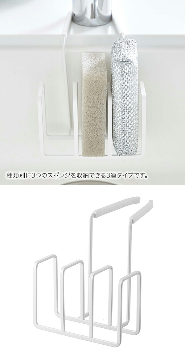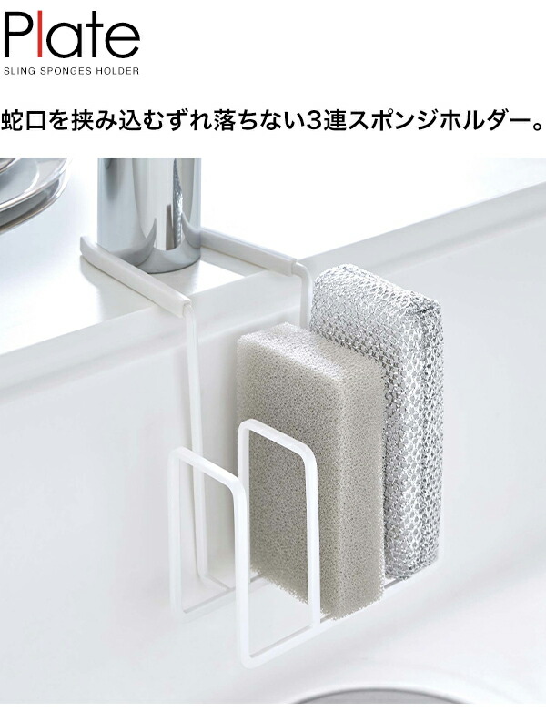 山崎実業 YAMAZAKI Plate 蛇口にかけるスポンジホルダー 3連 プレート ホワイト 4399