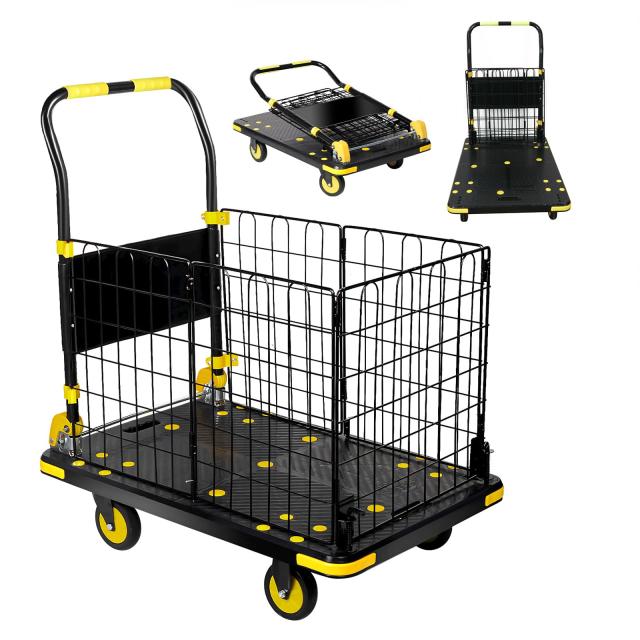 ?革新的平板台車への変換可能性: 活動的なメッシュカバーを備え、カバーを下ろすことで簡単に平板台車に変換。112cm×75cmの広々としたスチールメッシュベッドは、四方のサイドカバーが取り外し可能で、多様な用途に対応します。な折りたたみ式スチールメッシュ: 大きな荷物を運ぶ際には折りたたんで、小さな荷物を運ぶ際には展開して使用できるスチールメッシュが、荷物の落下を防ぎます。
