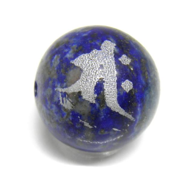 サク 勢至菩薩 ラピスラズリ 彫刻ビーズ 横穴 八大梵字 レーザー 梵字玉 【穴あり一粒売りビーズ】パワーストーン