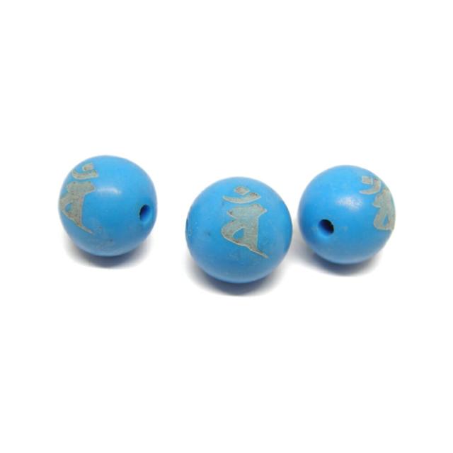 バン 大日如来 ターコイズ (縞なし) 彫刻ビーズ 横穴 八大梵字 レーザー 梵字玉 【穴あり一粒売りビーズ】パワーストーン / インペリアルオーラ