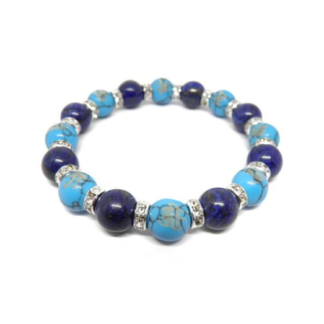 八大梵字 ターコイズ(素彫り)12mm ブレスレット ラピスラズリ 天然石 パワーストーン プチギフト