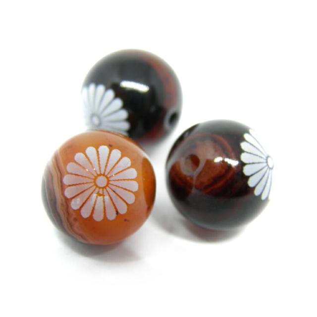菊花紋章 ブラックサードオニキス (チベット産) 10mm 素彫り【レーザー彫刻ビーズ・彫りビーズ 】パワーストーン / インペリアルオーラ