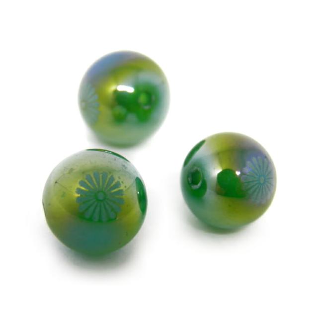 菊花紋章 グリーンカルセドニーオーラ 10mm 絵柄小 素彫り【レーザー彫刻ビーズ・彫りビーズ 】パワーストーン / インペリアルオーラ