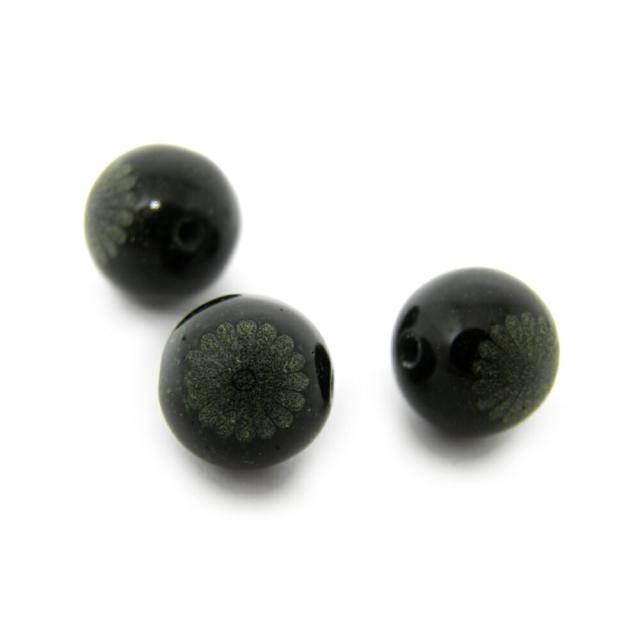 菊花紋章 グリーンゴールドストーン 10mm 素彫り【穴あり一粒売りビーズ】パワーストーン