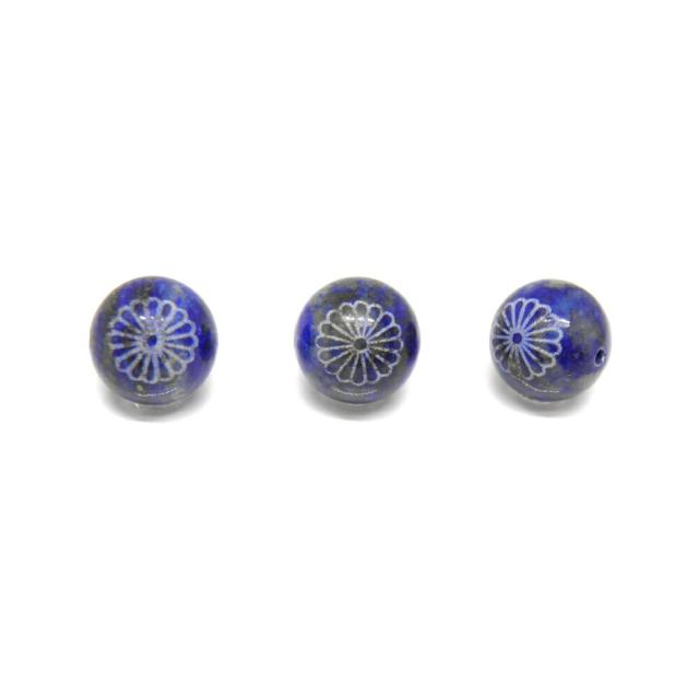 菊花紋章 ラピスラズリ (銀)縞あり 12mm 線彫り【彫刻ビーズ・彫りビーズ】 / 天然石、パワーストーンの専門店インペリアルオーラ