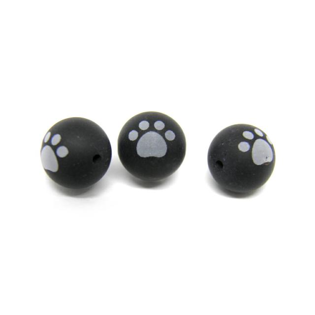 猫の足跡 猫の肉球ビーズ フロストオニキス 10mm玉 素彫り レーザー彫刻ビーズ・彫りビーズ 天然石 パワーストーン / インペリアルオーラ