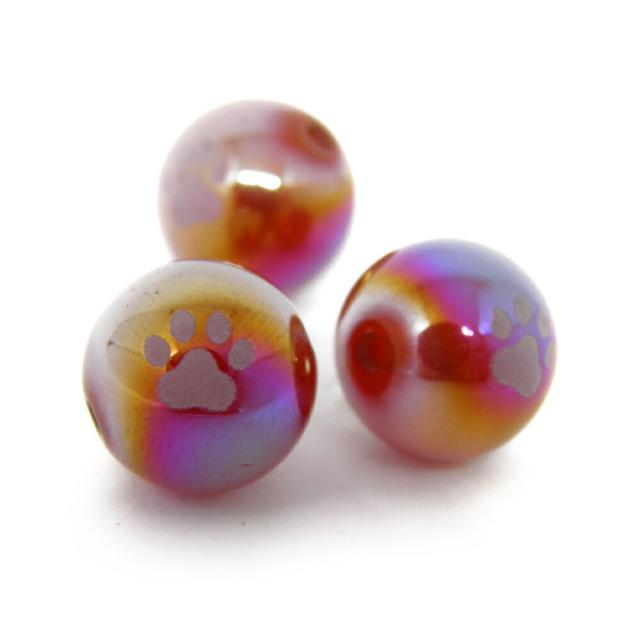猫の足跡 猫の肉球ビーズ NO2 レッドカルセドニーオーラ 10mm玉 素彫り レーザー彫刻ビーズ・彫りビーズ 天然石 パワーストーン / インペリアルオーラ