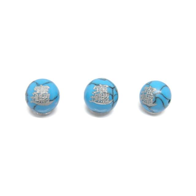 招財進寶 彫刻ビーズ ターコイズ(銀色入り)12mm 【彫刻 一粒売りビーズ】 金運 天然石 パワーストーン